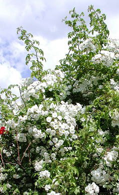 suitable for climbing into trees, Wichuriana rambler, prune after flowering, only to shape bush.